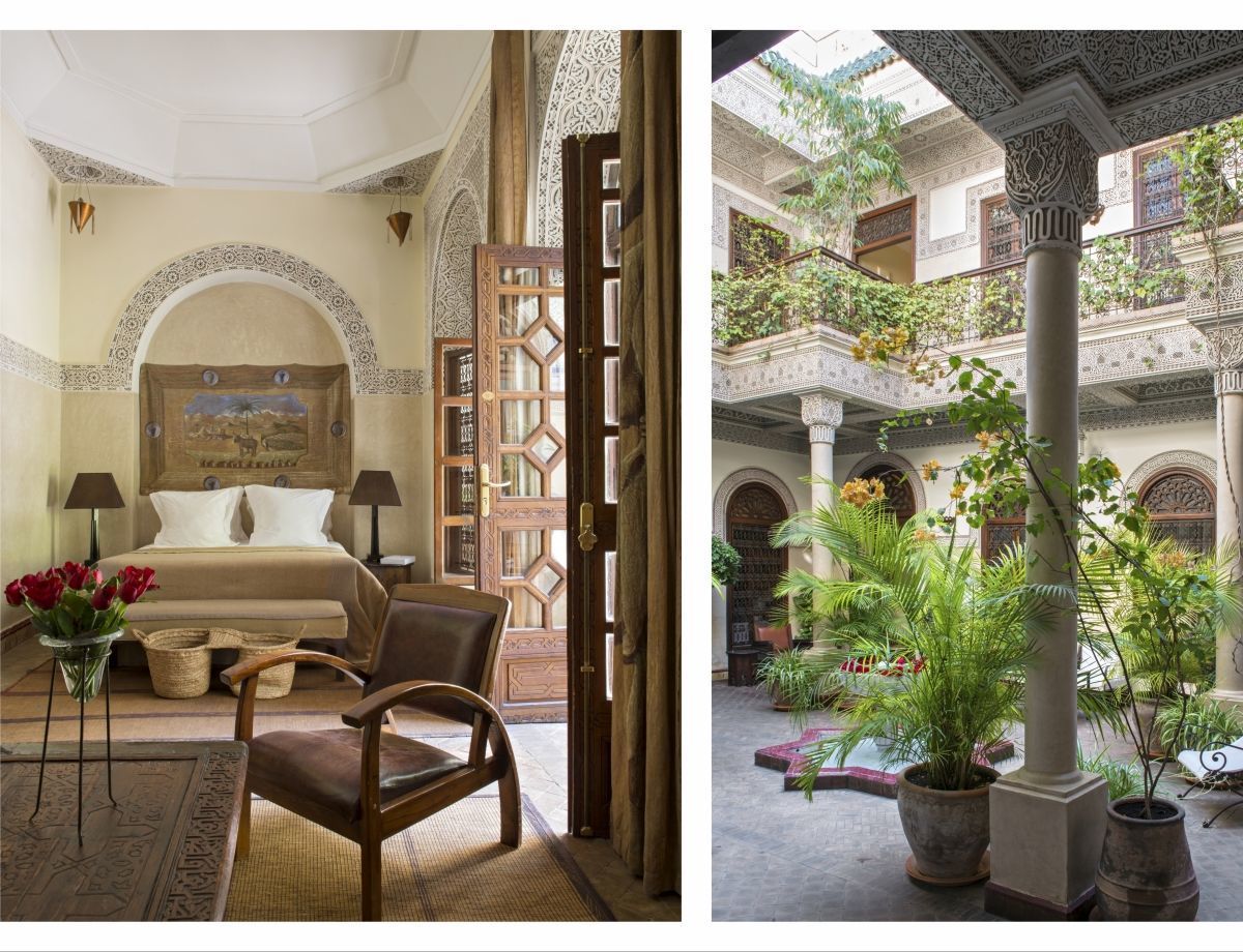 The Villa des Orangers is an intimate haven of peace located near the bustling souks of Marrakech with 27 rooms and suites arranged on two levels around three verdant open-sky patios with water fountains surrounded by galleries of chiseled plaster and a garden. The Villa des Orangers is a riad, it is a traditional Moroccan townhouse built round a courtyard. Riads are usually constructed on different stories not necessarily floors and therefore have many stairs and no lift. The Villa des Orangers makes no exception to this tradition and most of the rooms and suites have stepsto go up to the bedroom as is the case for duplex suites, or to the bathroom as in one of the deluxe rooms, but also in all rooms and suites with a rooftop terrace or balcony. The hotel has three swimming pools: a rooftop one with a nice view of the nearby Koutoubia mosque and the Atlas Mountains; a large swimming pool situated in the garden and a small one in the private riad, which has two suites and a solarium.There are also three lounges with fireplaces, two dining rooms, three massage cabins, a Moroccan traditional hammam, a beauty centre, a fitness club and a decoration boutique. Free wireless internet connection is available in the lounges and courtyards.