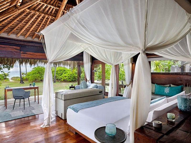 North Island is a place of barefoot luxury for those seeking an unspoilt, spectacular tropical retreat. There are only 11 individually handcrafted guest villas on the entire island, each constructed to create a sensorial experience in surroundings of understated elegance and providing a unique atmosphere and distinct flavour of the Seychelles. Each villa has a study or second bedroom, creating the perfect space for children. All the villas are built directly on the eastern beach. A lounge, dining room and library, scenically located health spa and gym, world-class dive centre, and a rim-flow swimming pool are all built into a granitic outcrop. A sunset bar and restaurant are tucked away on the western beach of the island. On this floating paradise, 11 guest villas have been built from local materials reaped from the rehabilitation process, where luxury and simplicity mingle to form a signature architectural style we call ‘barefoot luxury’.North Island is a place that unashamedly aims at providing the very best in privacy, location, accommodation, services, facilities and experience, yet has restored its environment to a place of verdant plenty; a Noah’s Ark afloat in warm tropical waters in colours of blue and aquamarine. The true essence of North Island is a rare encounter that is in harmony with the environment – one that touches and inspires the lives of all who walk her beaches, dive her waters and contemplate her beauty. The Piazza is the natural focal point of the Island, gathered around and beneath a large Indian almond tree. The architecture blends ovals and minimalist lines that lead the eye to the uninterrupted 360-degree views of beach, tree and the inner Island. The furnishings symbolise lightness and escape and a wide deck leads seamlessly onto the beach and the endless horizon. The complete openness of the lounge and bar area is transparent and minimalist, while inviting sun-bed loungers and cushions supply sumptuous comfort. The library and scattering of artefacts are part of an ongoing essay in the old trading history of this magical place.Each of the 11 villas is a home for a couple or family, lovingly and individually handcrafted by Seychellois and African craftsmen from wood, local-hewn stone and glass. This is your haven: a warm inviting space in which to enjoy a complete sense of ease and freedom. Should you wish, all 11 villas and the island as a whole can become your own private domain. Villa North Island is the essence of privacy and exclusion. The sheer volume, scale and luxury of this villa are unimaginably decadent as it spreads out across multi-tiered levels, cascading down granitic boulders onto a private beach entry to the ocean.
