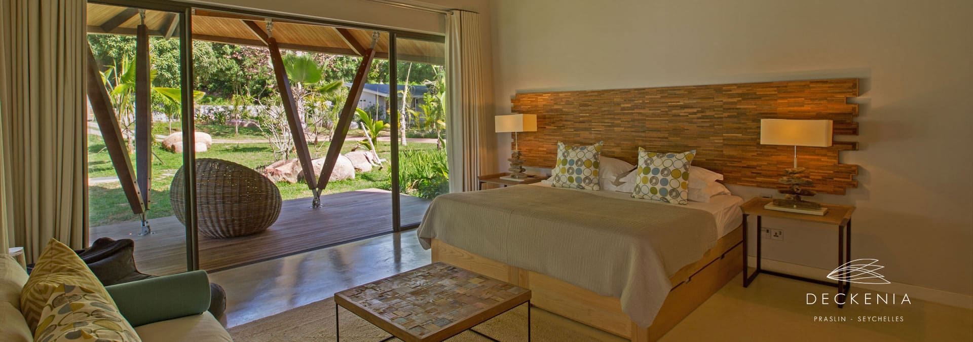 Villa Deckenia is a luxury private villa on the east coast of Praslin Island, close to the fabulous Cote d’Or. Nestled beside Anse Gouvernement beach, among giant Seychelles granite boulders, this sumptuous property of 5300 square metres offers an oasis of peace and serenity. The Deckenia property consists of five bedrooms. The main house has 3 bedrooms as well as a lovely swimming pooll overlooking the beach and ocean; two slightly separate rooms (linked to the main house) each have their own private infinity pool. The villa is ideal for accommodating large families or groups of friends up to 10 adults and 2 children as it is for exclusive use.