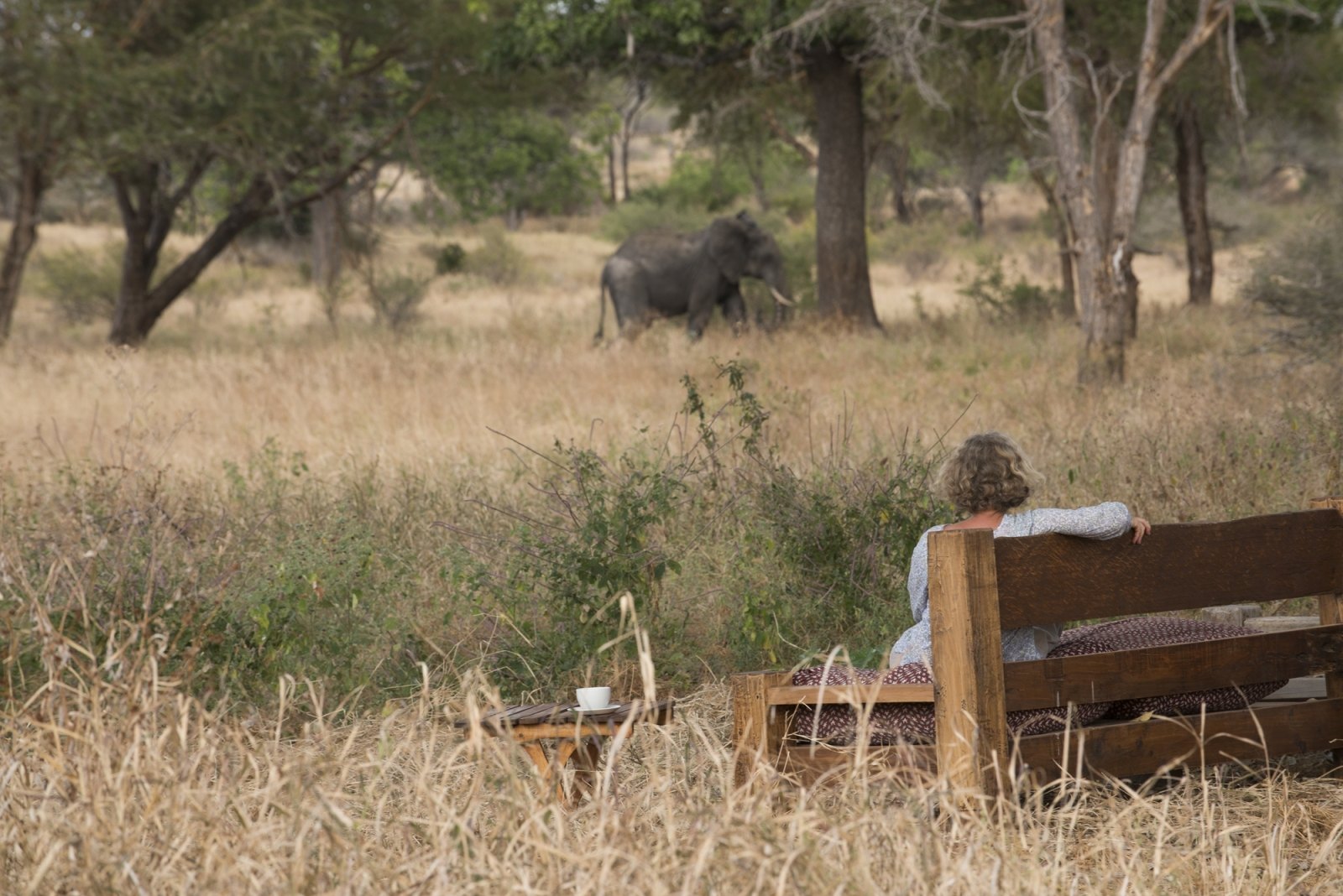 Kuro Tarangire is set amid a grove of Acacia and Kigelia trees on the banks of the Tarangire River – often a dry, sandy course snaking through this quiet area of the park. The area sees the rhythmic movement of wildlife as it traverses the park from the hills in the west to the swamps on the eastern side, and between the north and the south along the river line. Conscious of wanting to experience this place in a way that harmonises with the natural tempo, Kuro Tarangire is an eco-friendly camp, whilst still being stylish and comfortable. There are six light safari tents complete with comfortable beds, en-suite bucket shower and flushing eco-toilet. The family tent has two en-suite bedrooms and an adjoining sitting area. They rest amongst the trees with views over the African bush. All guests gather to share meals and relax under the cool grass thatch of the open-sided lounge and dining area which is furnished with hides and canvas, brought to life with a touch of colourful and tactile textiles.