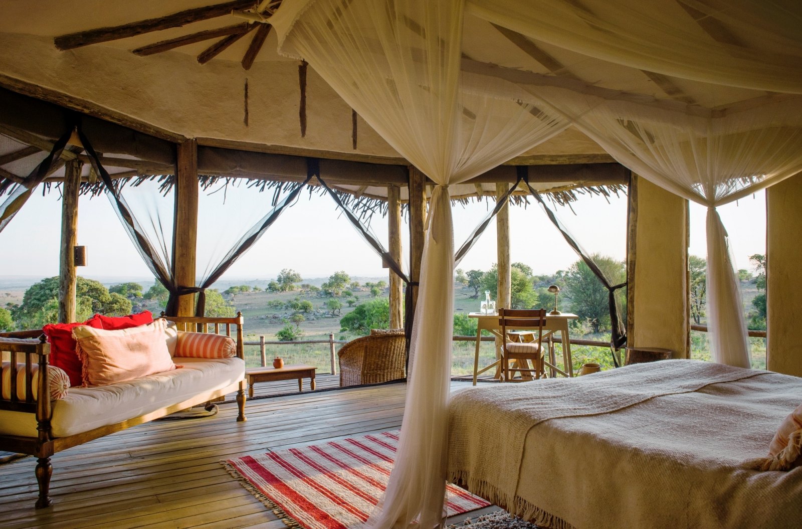 Decorated in classic Safari style with large beds and opulent rugs, the six lavish Meru style tents are deeply romantic.