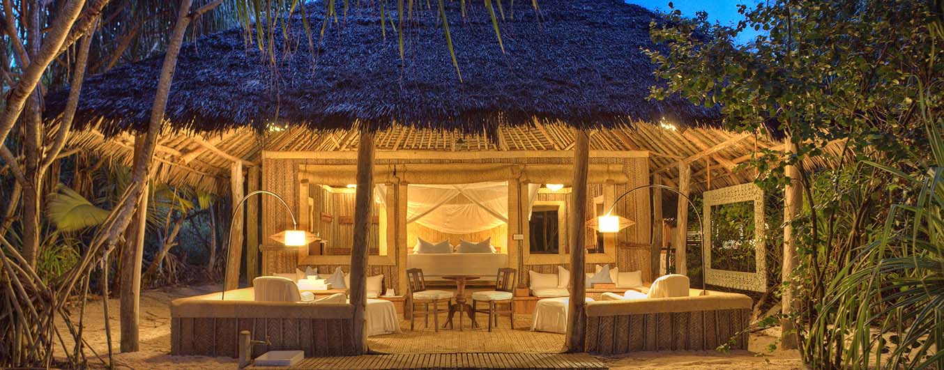 From snorkelling, swimming and kayaking, to massages on the beach, to doing nothing at all, Mnemba has something for everyone. If you have ever harboured the secret wish of finding yourself the sole inhabitant of a beautiful tropical island, but without the effort of having to lift a finger to fend for yourself, Mnemba Island is just the place for you! Discover sheer, unpretentious paradise on this private island, where the simple pleasures become your most treasured of memories for many years to come. Relax and unwind in the exclusivity of your own stretch of beachfront, where simple yet luxurious bandas peep out onto unblemished sands from the dappled shade of the casuarina pine foreSet on a private island off the north eastern tip of Zanzibar, Mnemba offers guests the perfect destination to get away from it all.With just ten palm-frond guest bandas on the entire island, the only intrusion may be a visit from a curious suni antelope or two at sundown. The balmy blue waters invite you to explore the surrounding Indian Ocean. With a dive school and two dive boats for just 20 guests, you will never feel crowded during your underwater adventure. Sea breezes waft through high palm-frond roofs and large windows in your beachside banda. Open thatched dining and sitting areas provide the perfect place to watch the sun set. Enjoy lunch served on large, wooden carved platters, whilst island crabs scuttle across the sand. Later, when the magnificent African sky lights up with stars, dinner is served on the beach, with the bright moonlight reflecting off the waves as they gently lap on the beach.