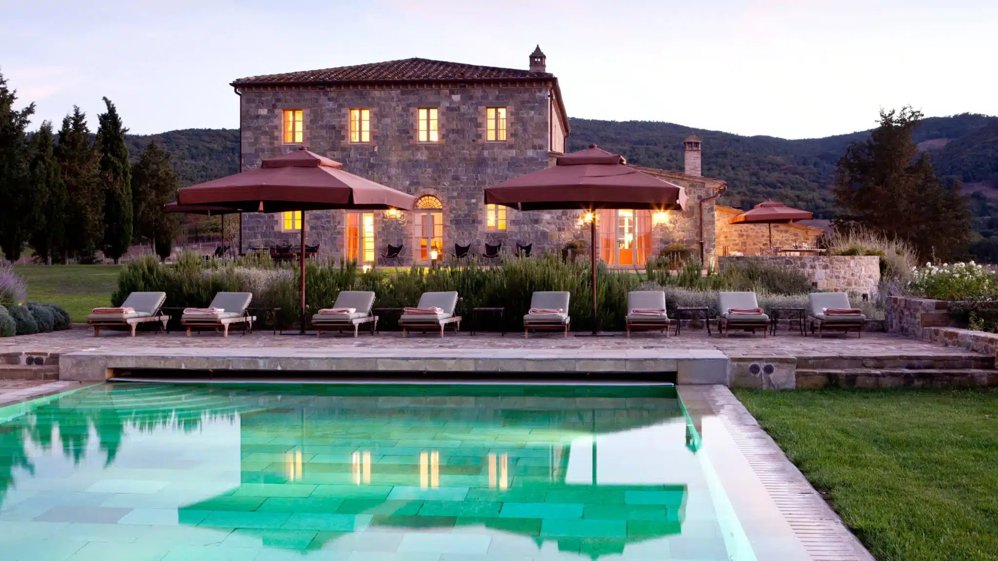 This sprawling country estate offers a quintessential Tuscan experience amongst the vineyards and rolling hills of Montalcino. With 5,000 acres to explore, the opportunities are endless, whether golfing on the Tom Weiskopf designed course, wine tasting at the on-site winery, truffle-hunting, exploring the ancient villages of Val d’Orcia or horseback riding. When not exploring the Tuscan countryside, the estate itself is home to a serene spa offering rejuvenating treatments amidst the tranquil Tuscan landscape, while the estate’s fitness centre, tennis courts, and lavender-fringed infinity pool provide ample opportunities for relaxation and recreation.The 42 suites can be found in the Borgo, the restored farm hamlet at the heart of the estate and their handpicked antiques and contemporary Italian design provide a rustic-chic ambiance. Dotted around the grounds, 11 restored farmhouse villas offer a private residence complete with heated infinity pools, terraces, kitchens, and gardens with a 4×4 vehicle for guests to use. Dining at Castiglion del Bosco is an experience to savour, with two exceptional restaurants. Michelin-starred Ristorante del Drago offers a romantic atmosphere and a creative Italian menu featuring fresh ingredients from the extensive kitchen garden, while Osteria La Canonica provides a trattoria-style setting for authentic Tuscan cuisine with a view to match.